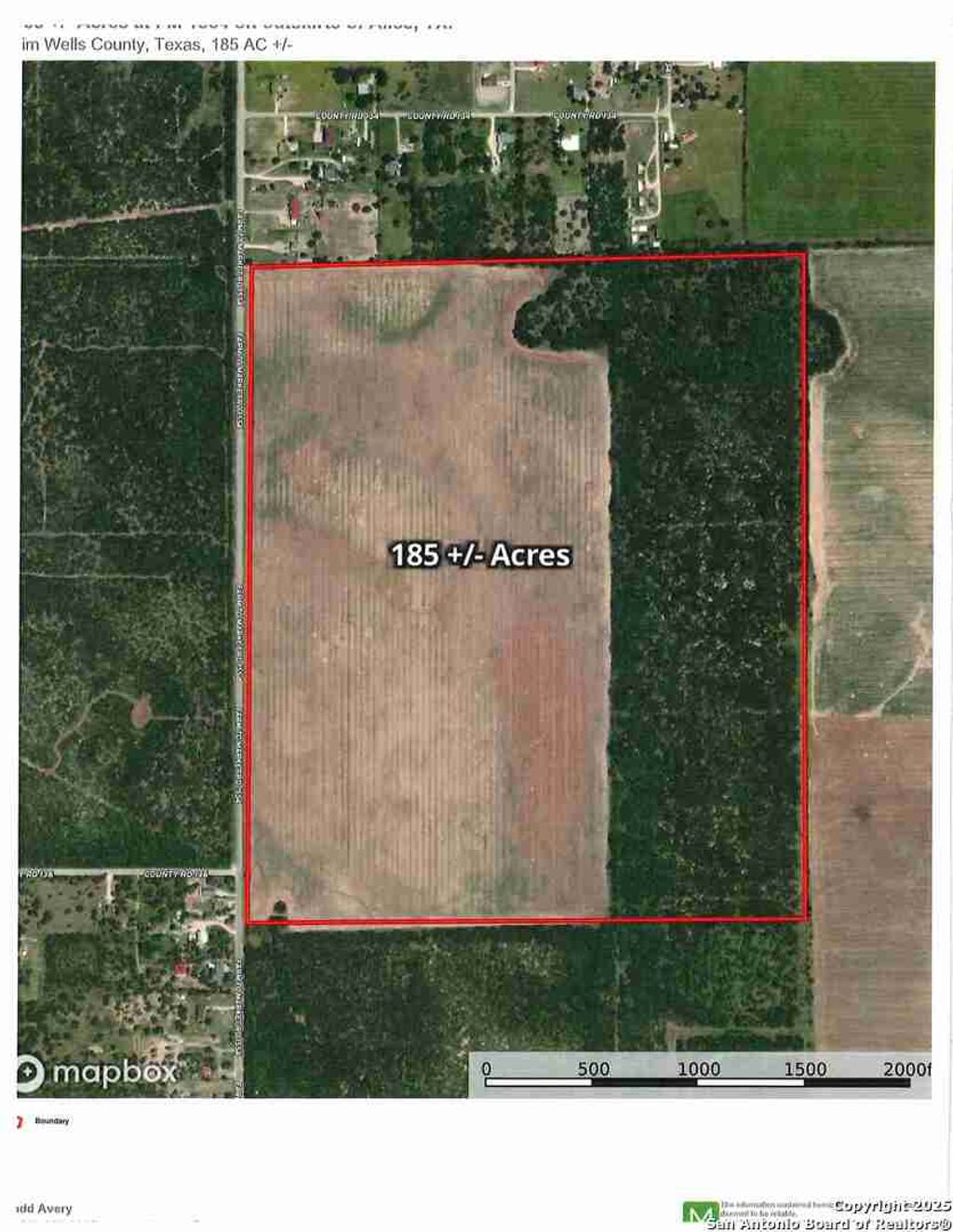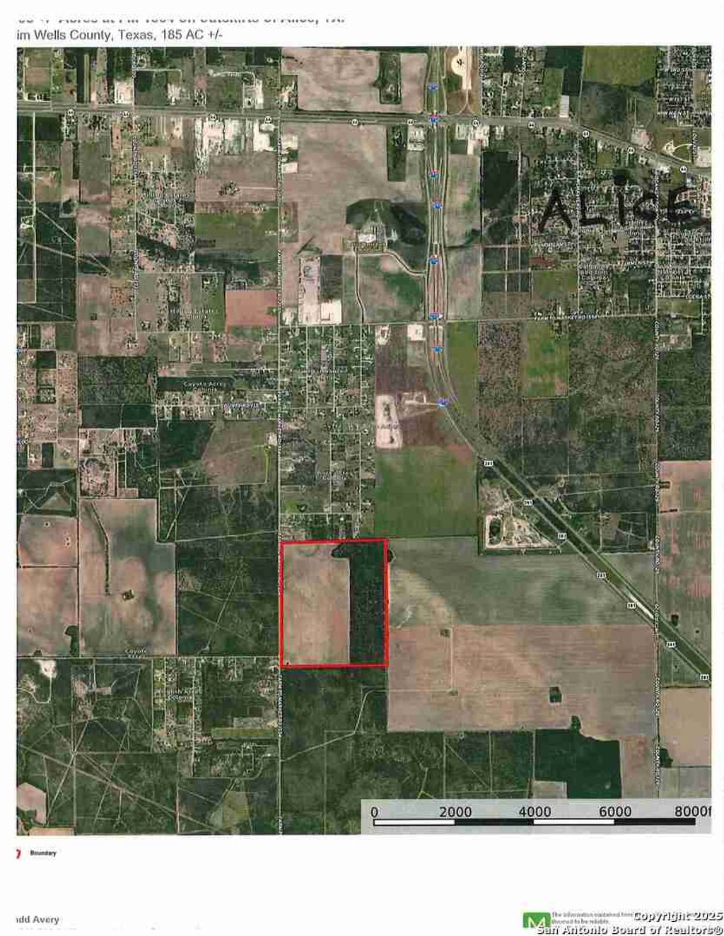 185 +/- acre South Texas ranch on the outskirts of Alice, just out of the city limits. A good mix of cultivated farm land (approx. 110 ac farmland) and thick native brush (approx. 75 ac). Excellent paved road frontage on FM 1554. Electricity is on the east side of FM 1554 at the SW corner of this property. City water lines are located on east side of FM 1554, just north of the NW corner of the property, making this an excellent property for future development. Farm land is currently leased on a year to year basis. Again, great investment potential.