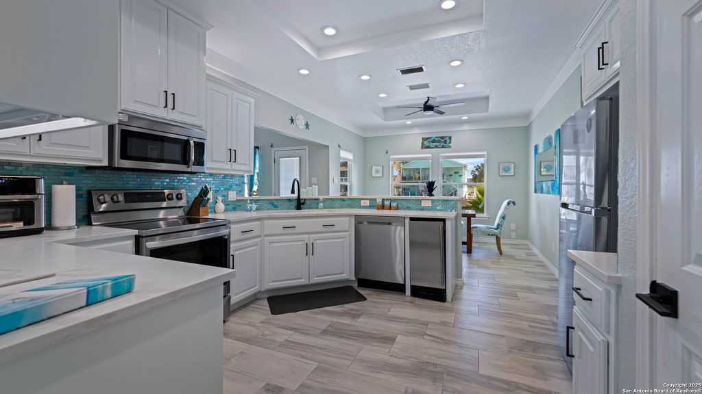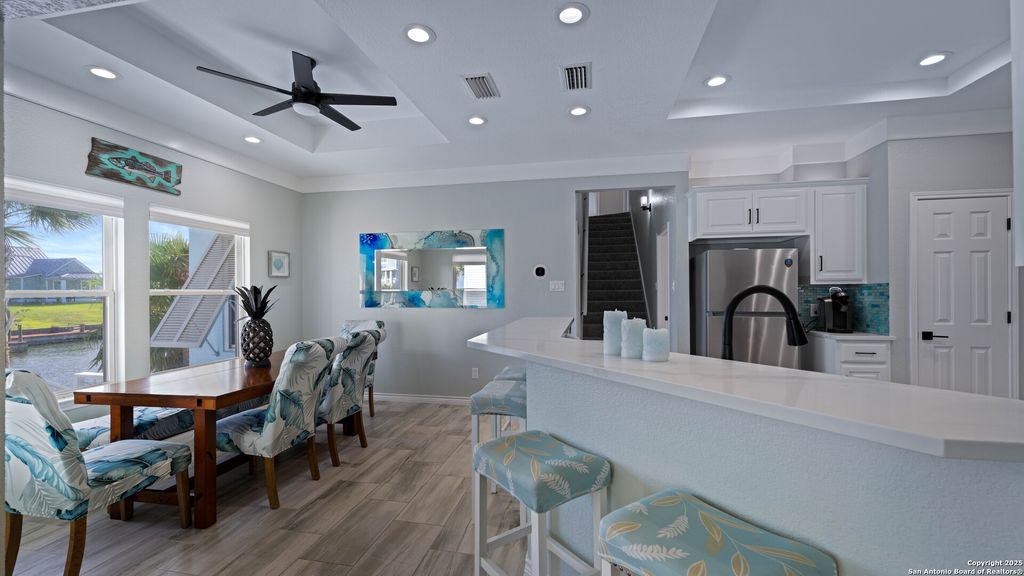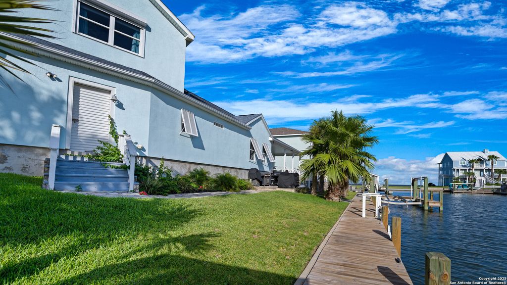Experience the ultimate coastal lifestyle in this stunning, fully remodeled coastal house, perfectly positioned at the end of a peaceful cul-de-sac with a wide canal overlooking Estes Flats. This exquisite home offers a seamless blend of comfort, style, and breathtaking views. This spacious house boasts four beautifully appointed bedrooms and a total of two full bathrooms and two half baths, with one conveniently located in the garage. The master suite, situated on the bottom floor, features a luxurious en-suite bathroom for your utmost comfort. Enjoy the open and airy living room, which flows effortlessly into the dining area. The abundance of windows throughout the main living spaces ensures you never miss a moment of the serene canal views. The beautiful kitchen has a bar area for extra seating, views of the canal and coastal colored tile backsplash. The laundry room is also conveniently located on the bottom floor for easy access. Also on the bottom floor is a second bedroom and a dining room/study/flex room. The top floor has two additional bedrooms and a a full bathroom with a dual vanity, providing ample space for guests. An oversized garage with epoxy flooring and extra storage space ensures room for all your vehicles, boats and equipment. The garage also features a convenient half bath. With over 100 feet of dock and bulkhead which is maintained by the HOA- (huge added value) There is a boat lift also along the dock making this a angler's dream. The expansive dock area is located in one of the subdivision's most desirable locations, granting easy access to the intercoastal waterway and stunning views of Estes Flats. Anglers will appreciate the two fish cleaning stations provided, ensuring every catch is easily prepared. The expansive deck offers the perfect setting for outdoor entertaining or simply soaking in the panoramic views of the waterway and surrounding natural beauty. This home has been meticulously remodeled, featuring new flooring, paint, lighting, tile, carpet, and showers. The addition of hurricane shutters ensures peace of mind during stormy weather. The home is equipped with two HVAC systems, with the top floor's unit being brand new, ensuring year-round comfort. Don't miss your chance to own this slice of paradise, offering unparalleled access to world-class fishing and the tranquil beauty of the coast. Short term rental allowed. Investment opportunity Your dream coastal house awaits!